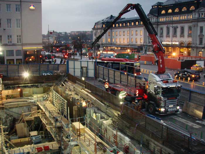 Vid bygget av den nya uppgången från järnvägstunneln som byggs vid Stockholm C