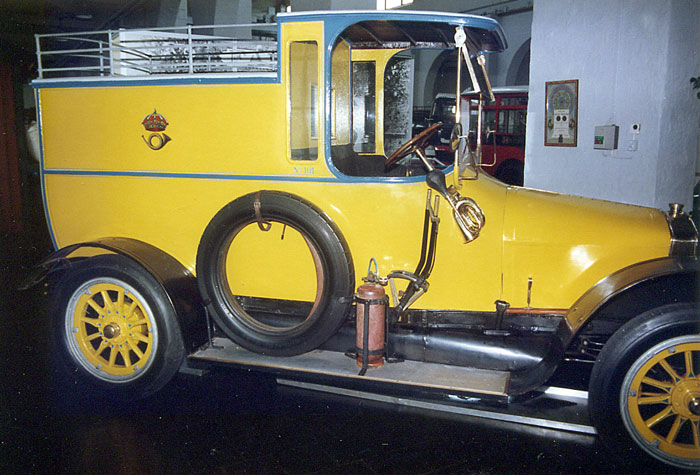 Detta var en av tretton beställda paketbilar för posten i Stockholm. I tjänst fram till 1927. Renovering startade på 60-talet. Hör till Postmuseet men har deponerats på Scaniamuseet i Södertälje.