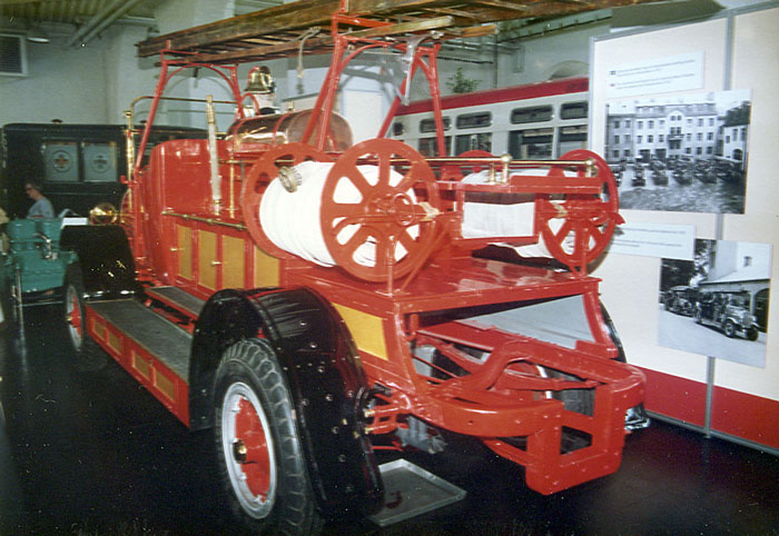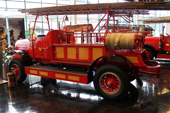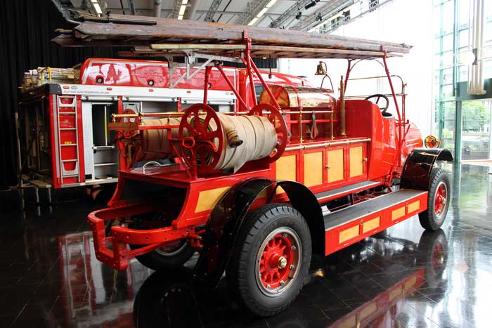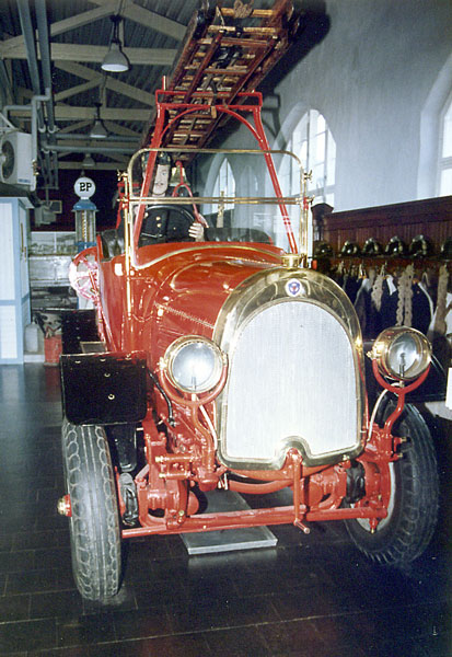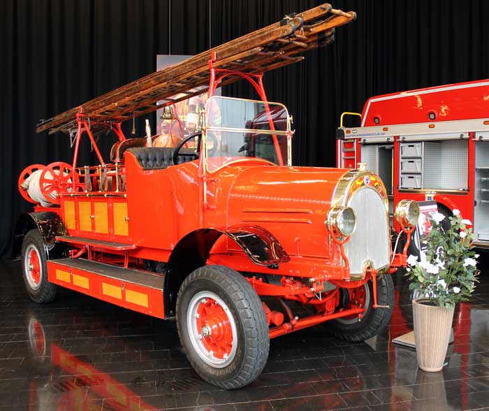 Troligen en av världens första fyrhjulsdrivna brandbil.