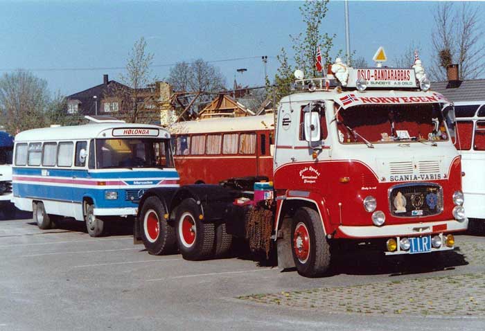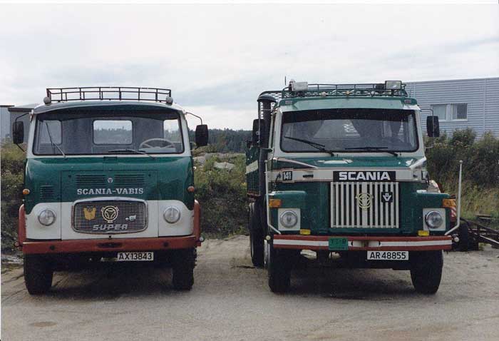 Scania-Vabis LB76 till vänster och en Scania 141 till höger - Norge 1990-talet