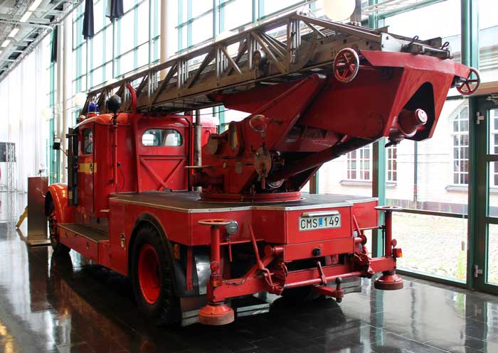 Utställning av brandfordon på Scaniamuseet i Södertälje sommaren 2013