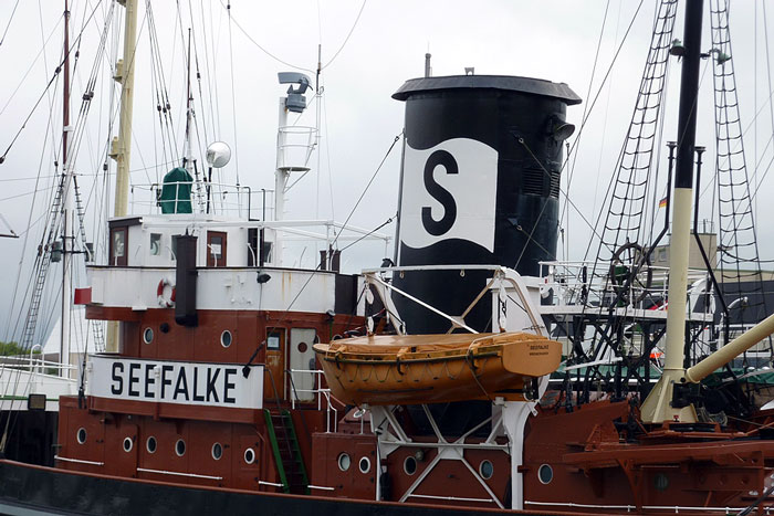 Bergungsschlepper SEEFALKE byggdes för räkning W Schuchmann i Geestemünde (numera en del av Bremerhaven). Sjönk 1945 i Kiels hamn efter en bombträff. Lyftes ett par dagar senare men sänktes i Kieler Förde för att undvika att bli taget som krigsbyte. Lyftes 1950 och moderniserades i Bremerhaven och sattes åter i drift (de gamla maskinerna behölls). Rederiet W Schuchmann övertogs av Bugsier Reederei, Hamburg. SEEFALKE lades upp i Bremerhaven i slutet av 1960-talet, och skänktes 1970 av Bugsier till det tyska sjöfartsmuseet (Deutsche Schifffahrts Museum).