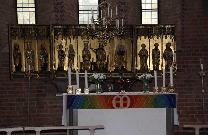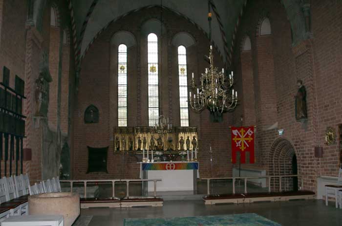 Ett svenktillverkat altarskåp där de äldsta figurerna är från 1300-talet. Skåpet kompletterades och fick nuvarande utformning i mitten av 1400-talet.
