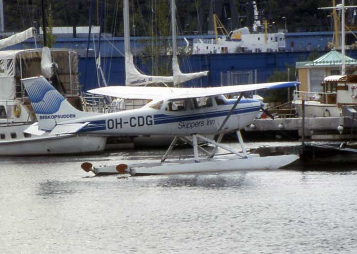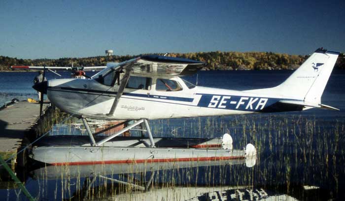 Cessna FR172G Reims Rocket. Finska flygvapnet 1972-1987, såldes till Sverige, försågs med flottörer. Svensk registrering SE-IXN.