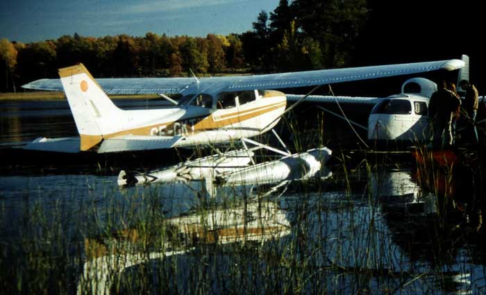 Cessna A185F Skywagon 185 sjö. Tillverkad 1974. Totalhaveri 1995, 4 mil NO Gäddede.
