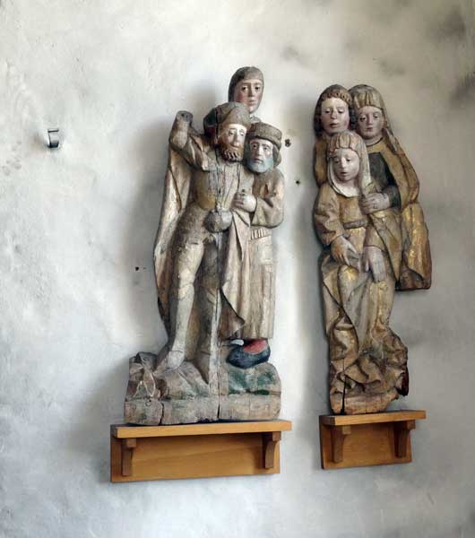 Från vänster, Anna själv tredje, St Anna med Maria och Jesusbarnet i knät. Därefter en Madonna från mitten av 1200-talet och till höger St Olof från ca 1300.
