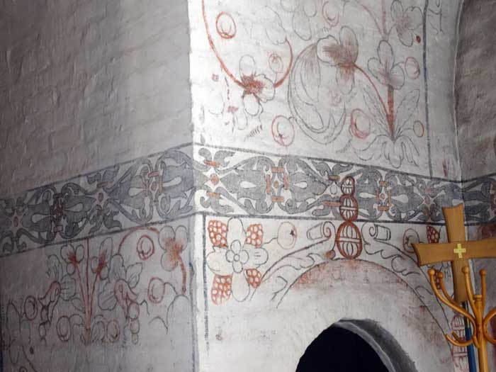 Kalkmålningarna från 1600-talet målades över under 1700-talet och har delvis tagits fram vid 1910 års renovering av kyrkan.