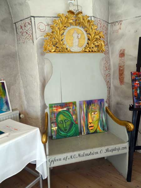 Tavlorna på stolen är en del av en utställning av konstnärinnan Martina Ekblad.