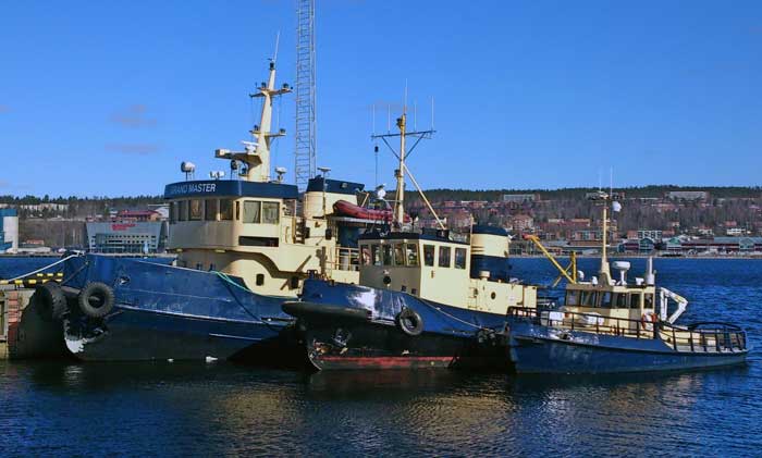 STYRBJÖRN assisterar 8 000 dwt RUBINO ut från Alfredshem, Örnsköldsvik, hösten 2007