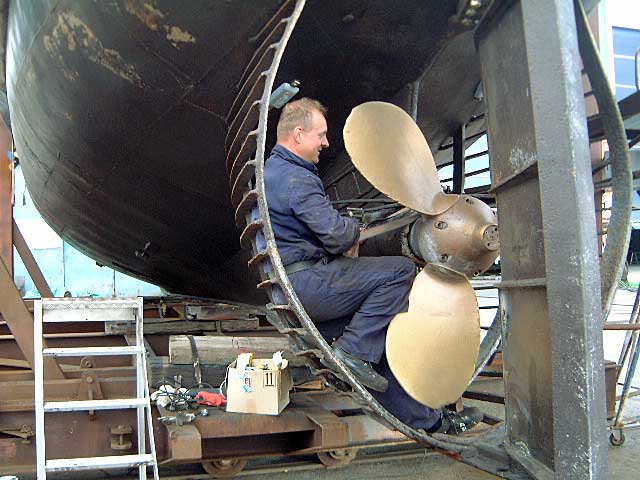 STYRBJÖRN under propellerbyte på arbetsbåten KALLE CUPÈ - hösten 2007