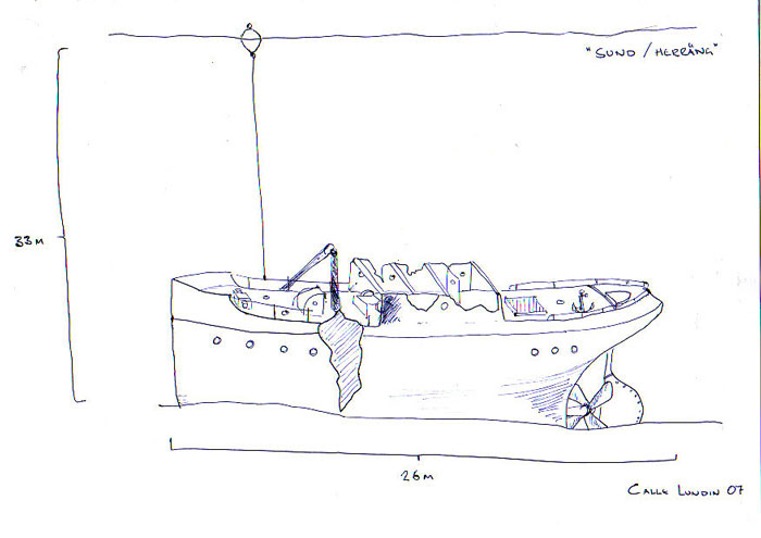 Skiss över hur vraket efter HERRÄNG ligger