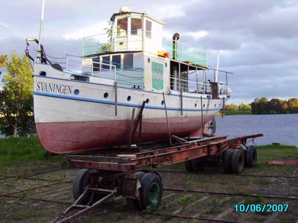Byggdes för Faxelfvens Ångbåtsbolag, Ramsele som passagerarfartyget RAMSELE. Övertogs 1877 av Faxelfvens AB, Ramsele som sålde 1881 till Ströms Trävaru AB, Strömsund. Dessa lät bygga om båten till bogserare åren 1881-82 vid Näsvikens varv och döpte sedan om till SVANINGEN. Kontrakt H V & V 24/11 1904: Ströms Trävaru AB, Strömsund för bogs. ’Svaningen’ ny maskin om 80 Ihk. Leverans: Senast 15/3 1905. Pris: 8.700 kr. Köptes 1910 av Ångermanälfvens Flottningsförening, Ramsele som flyttade henne i okt 1924 till en nybildat Driftsbolag med hemort i Nyland. Överfördes dit för 25.000 kr. I april 1933 likviderades ÅFF:s Drift AB och hon flyttades till ÅFF igen för ett värde av 10.511 kr. Låg upplagd några år innan hon den 6 juli 1959 övertogs som gåva av Ströms Hembygdsförening, Strömsund. Skulle bli museibåt, men pengar fattades och i stället såldes båten 1969 till T. Hadar Dahllöf, Ramsele, och då återstod endast skrovet, vilket priset, 100 kr, visar. Dahllöf an¬vände henne som husbåt, placerad i en vik i Ströms Vattudal, sålde till Yngve Gamlin, men 1983 skänktes hon till Vattudalens Båtklubb, Strömsund. Har under några år renoverats ordentligt.