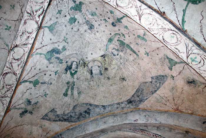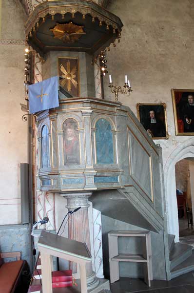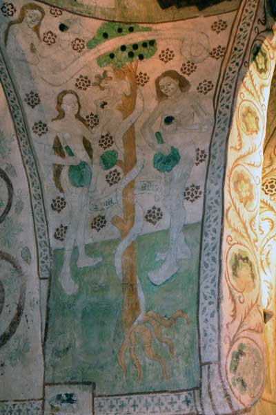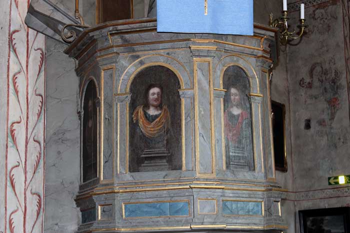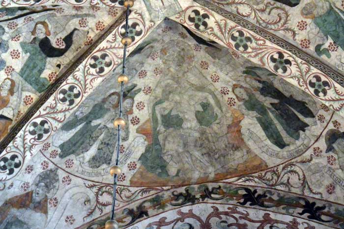 I trappan till orgelläktaren finns denna berömda målning av Albertus Pictor som föreställer en riddare som spelar schack med döden. Ett motiv som inspirerade Ingmar Bergman till att göra filmen Det sjunde inseglet.