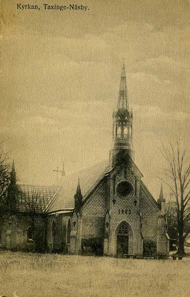 I Taxinge har det funnits kyrkobyggnad sedan medeltiden. Den tidigaste träkyrkans läge är obekant. En gåva till kyrkan omnäms i ett testamente från 1350. Omkring 1653 uppfördes ett nytt träkapell, som stod i 40 år. Den nya kyrkan som därefter uppfördes, var i bruk in på 1800-talet. Ett protokoll från 1857 visar att kyrkan då förfallit så mycket att det var livsfarligt att vistas i den. 1861-63 skedde ombyggnad av kyrkan, efter ritning av Adolf Edelswärd.