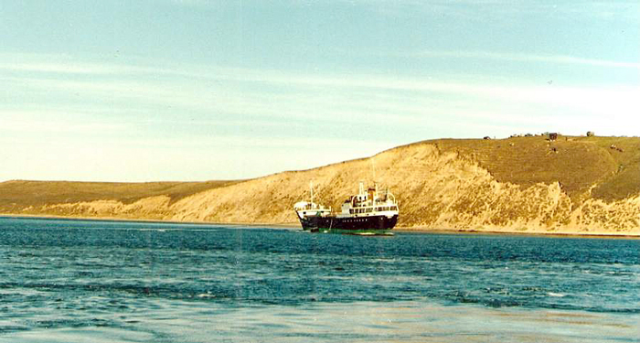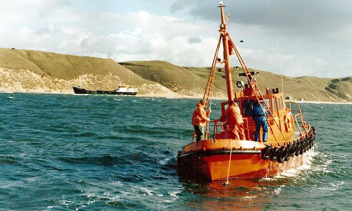 från TONSUND. Vinden mojnade och sjön la sig och förutsättningarna ändrades. Nu kunde lotsbåten nå ända fram