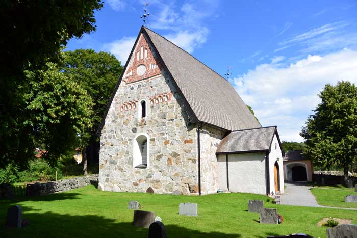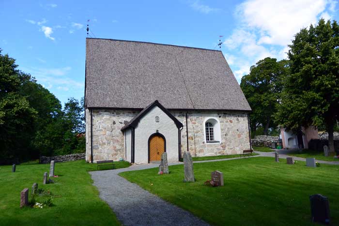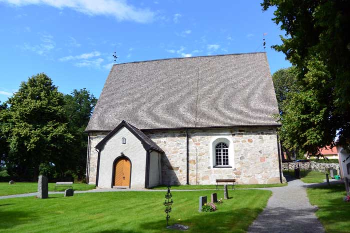 Gråstenskyrka från 1290-talet. Sakristian från 1470- talet. Vapenhuset ersatte ett tidigare 1812. 50 platser.