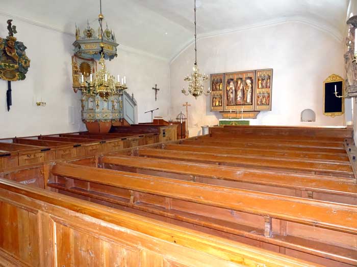 Den främre bänkinredingen är från 1600-talets mitt, övriga tillkom 1759.