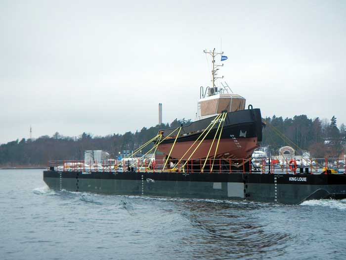 Leverans av TRITON till Stockholm på pråmen KING LOUIE, påskjuten av den holländska bogserbåten GOUWESTROOM - 23 januari 2019