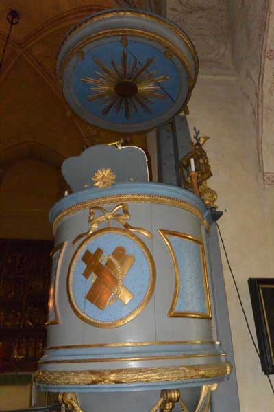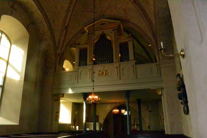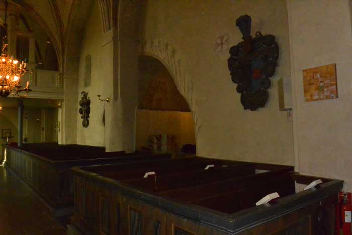 Brudbänken/bisopsstolen är från 1100-talet och är kyrkans äldsta inventarium.