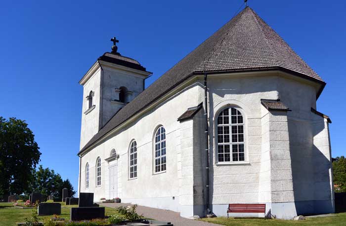 Byggd i gråsten på 1200-talet. Byggdes ut åt öster på 1300-talet. Tornet kom i början av 1400-talet och valven slogs i slutet av århundrandet.