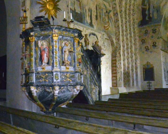 Målningarna i vapenhuset är delvis från 1300-talet. Vapenhuset är byggt i tegel och är samtida med kyrkan.