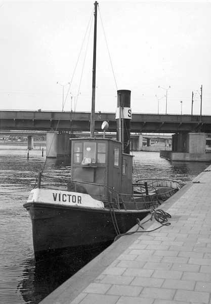Byggdes för Göteborgs Bogserings AB, Göteborg (Vita Bolaget) som VICTOR och kostade 17 250 kr. Köptes 1917 av Valdemar Larsson, Söderköping som i brev till inspektör den 16 jan 1941 meddelade; …att jag omkring 1920 sålde båten till ett sågverk på norrlandskusten, troligen Harnäs. Ägare blev mycket riktigt Harnäs Sågverk, Harnäs som övertogs 1922 av Ströms Bruks AB, Stocka. I ett meddelande till inspektör 1965 påstod Arne Gustav Wallin, Farsta att han på hösten 1963 tagit fartyget till Stockholm, och möjligen köptes båten då från Ströms Bruk, men av brodern Karl Olov Wallin. Näste ägare blev samma år Hans Almqvist, Stockholm som ändrade till fritidsbåt och han sålde året därpå till Nils Trygger, Näsbypark som modifierade namnet till VICTORINA. Hamnade, enligt rykten, i Västindien några år senare.