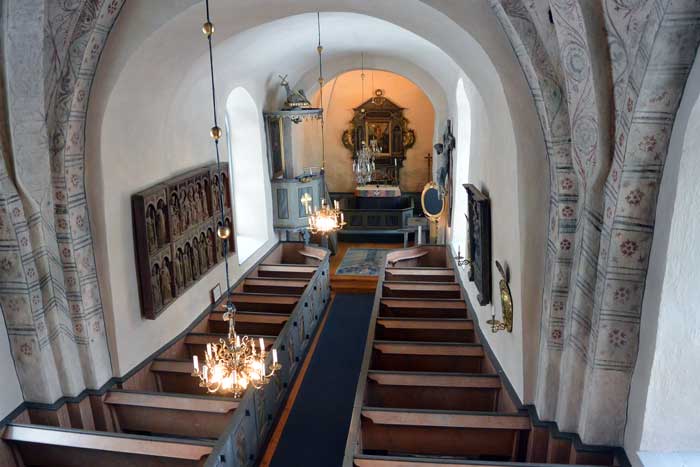 ..med de fina bänkdörrarna från 1687.