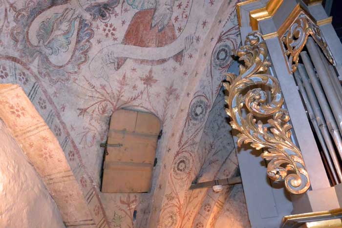 Kalkmålningarna knackades fram 1933, efter att ha varit vitlimmade i 200 år.