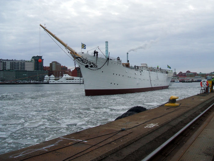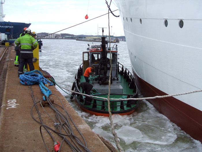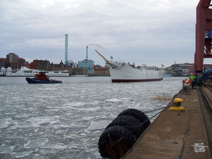 VIKING förhalas med hjälp av Sandinges RYGENE och HECTOR 14 februari 2011 från Cityvarvets docka till utrustningskajen