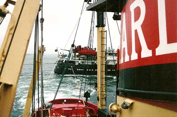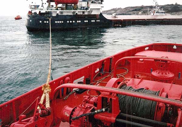 KARL och ARCTIC HELIOS gick ut för att dra båten loss, men hon gick inte att rubba. INGEMAR och FÄRDIG fick gå från Göteborg och med FÄRDIGS skopa kunde man lossa en del av lasten (sand), därefter kom båten loss.