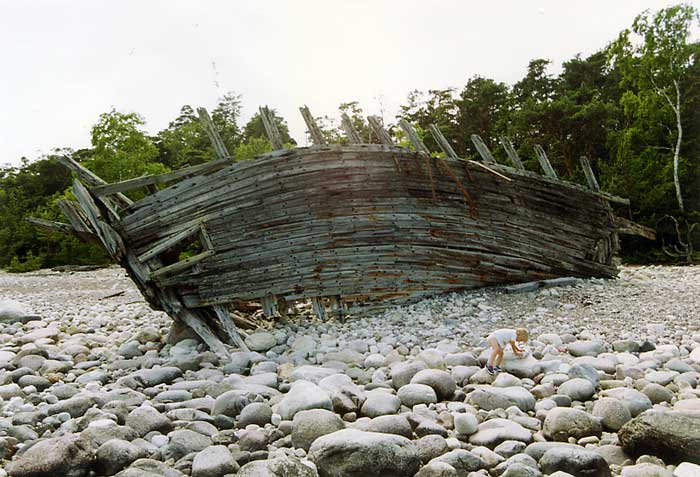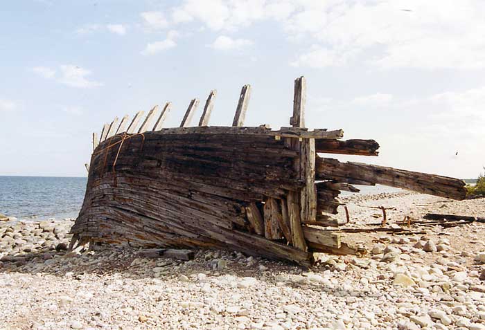 Skrovet påstås ha varit ganska intakt tills den svåra vinterstormen 1954 gav vraket en massa stryk - foto 1966