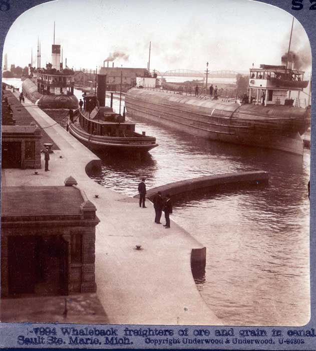 Foto okänd (texten på fotot 7994 Whaleback freighters of ore and grain in canal, Sault Ste. Marie, Mich. Copyright Underwood & Underwood, U-94302" "European Publishers Underwood & Underwood (London) Ltd." "Underwood & Underwood,New York & Ottawa, Kas. Works, Arlington, N. J