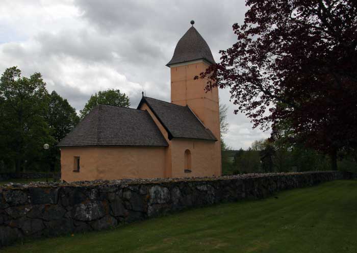 Upplands minsta kyrka. Tillkom på 1100-talet, tornet på 1200-talet, vapenhuset på 1400-talets mitt. Dekorerades av Albertus Pictor omkring 1480 i samband med att innertaket välvdes. 1723 drabbades kyrkan av brand när blixten slog ned. Tornspita, tak och klockstapeln förstördes. Reparationen drog ut på tiden, då kyrkokassan var skral. 1773-75 färdigställdes kyrkan och då försvann den gamla absiden åt öster som ersattes av den sakristia som nu finns.