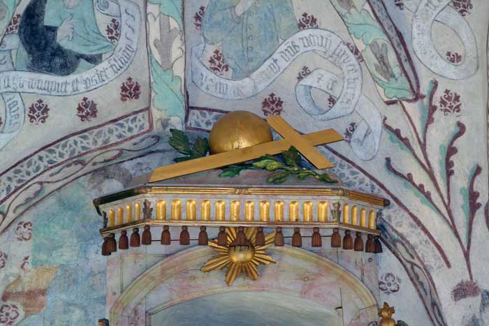 Zigzagmålningen till höger i valvsbågen är från 1300-talet.